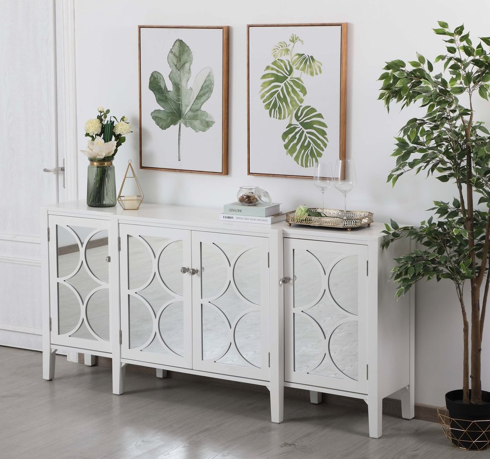 72 inch mirrored credenza in White