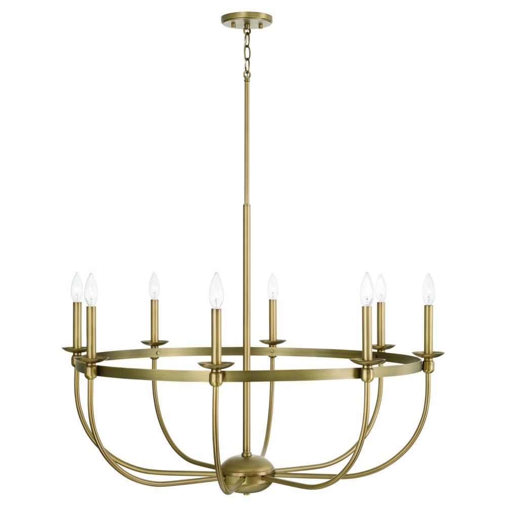 38"W x 28.75"H 8-Light Chandelier in Aged Brass