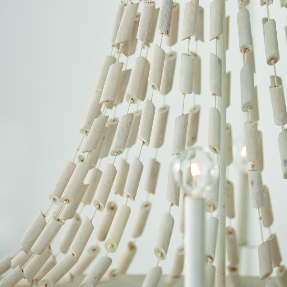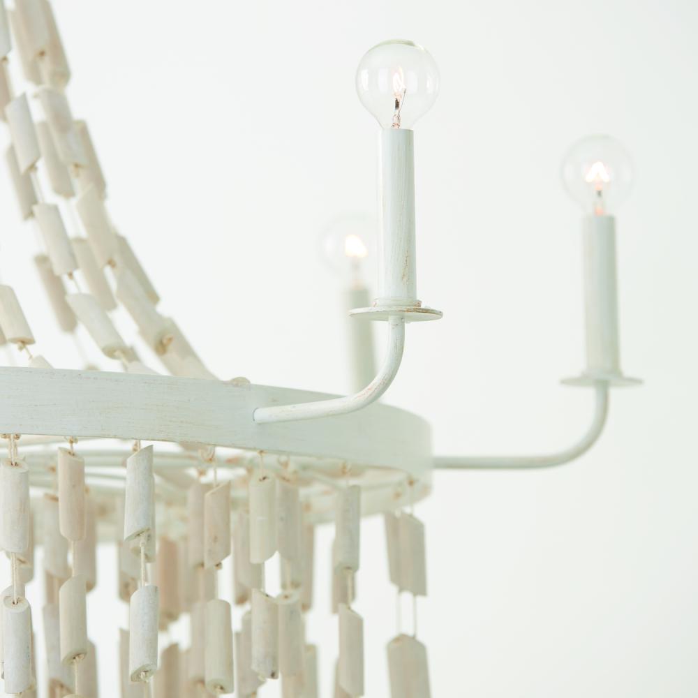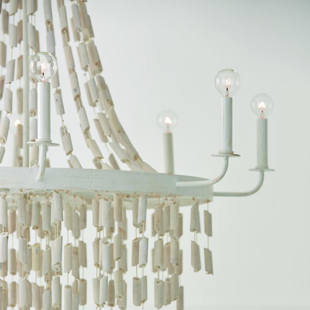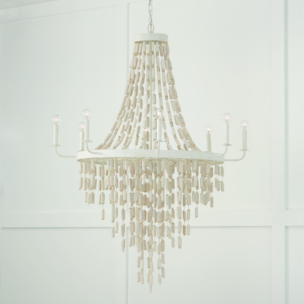 40.5"W x 54.25"H 8-Light Chandelier in Organic White with White Washed Natural Eucalyptus Beads
