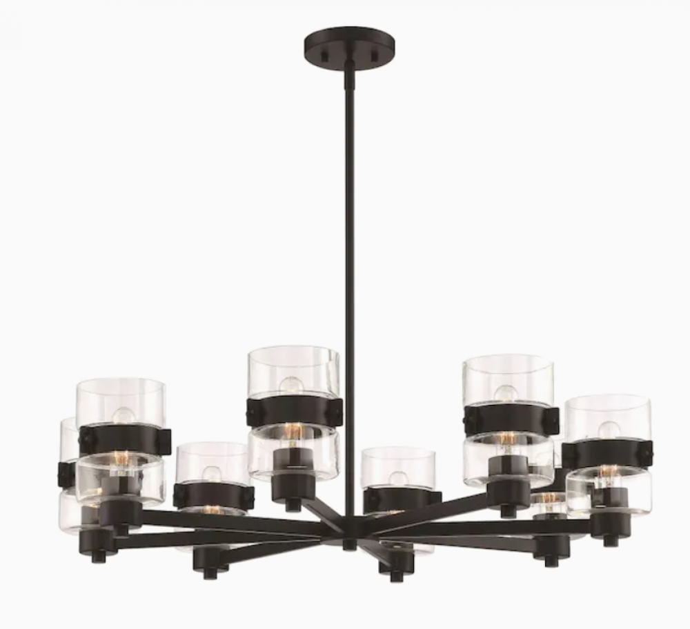 Matte Black 8 Light Chandelier with clear glass shade is part of the Midnight LA collection
