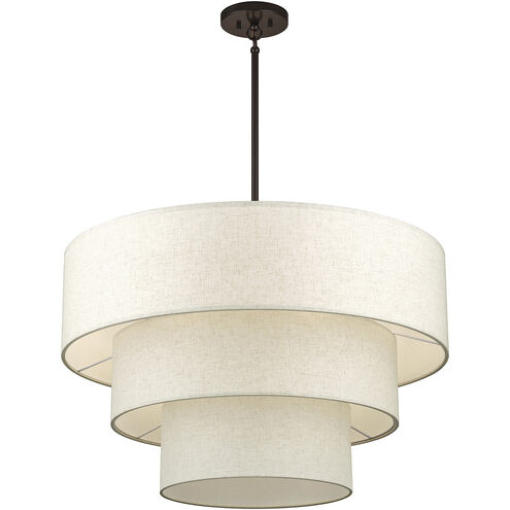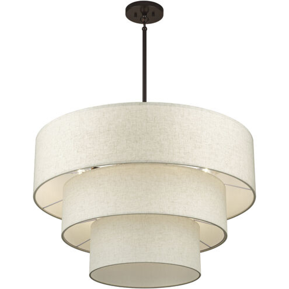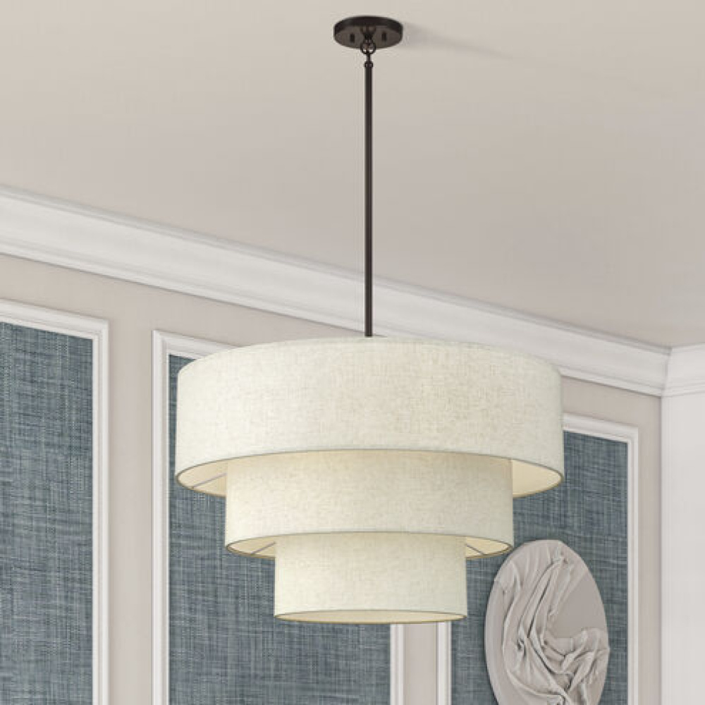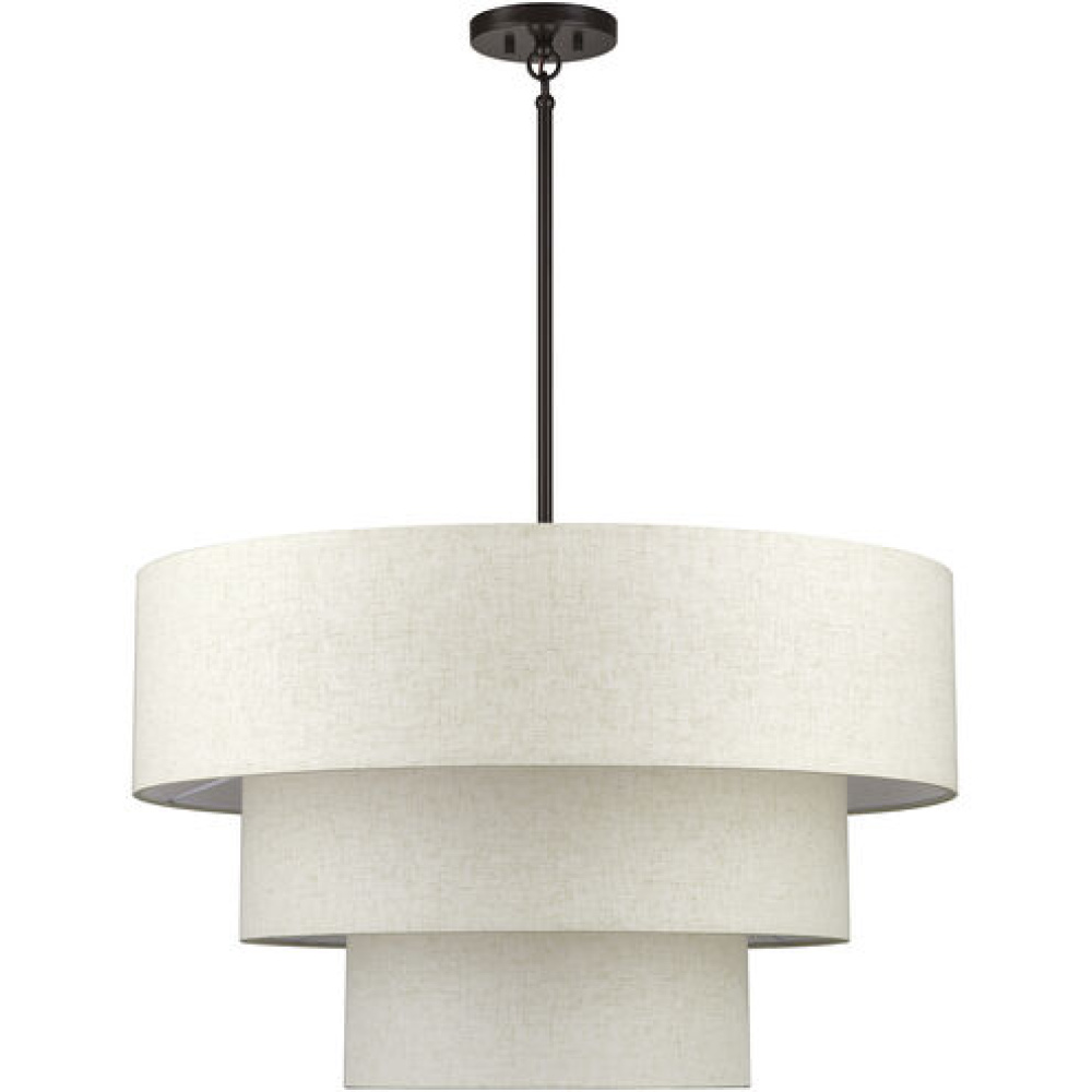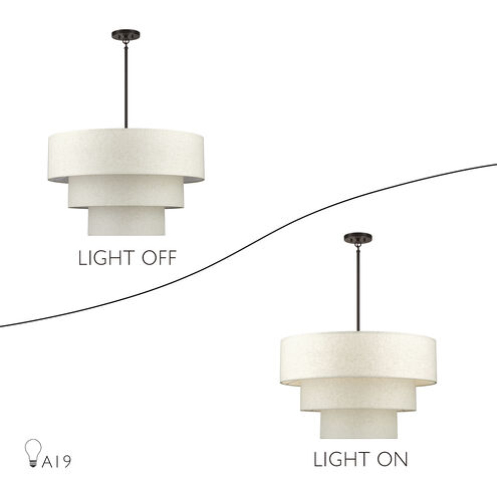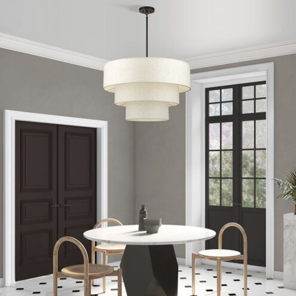 Livex Lighting 41088-91 - 8 Light Brushed Nickel Large Pendant Chandelier with Hand Crafted Off-White Fabric Hardback Shades