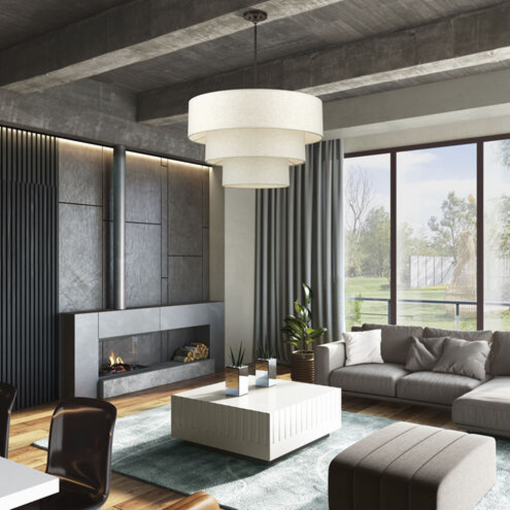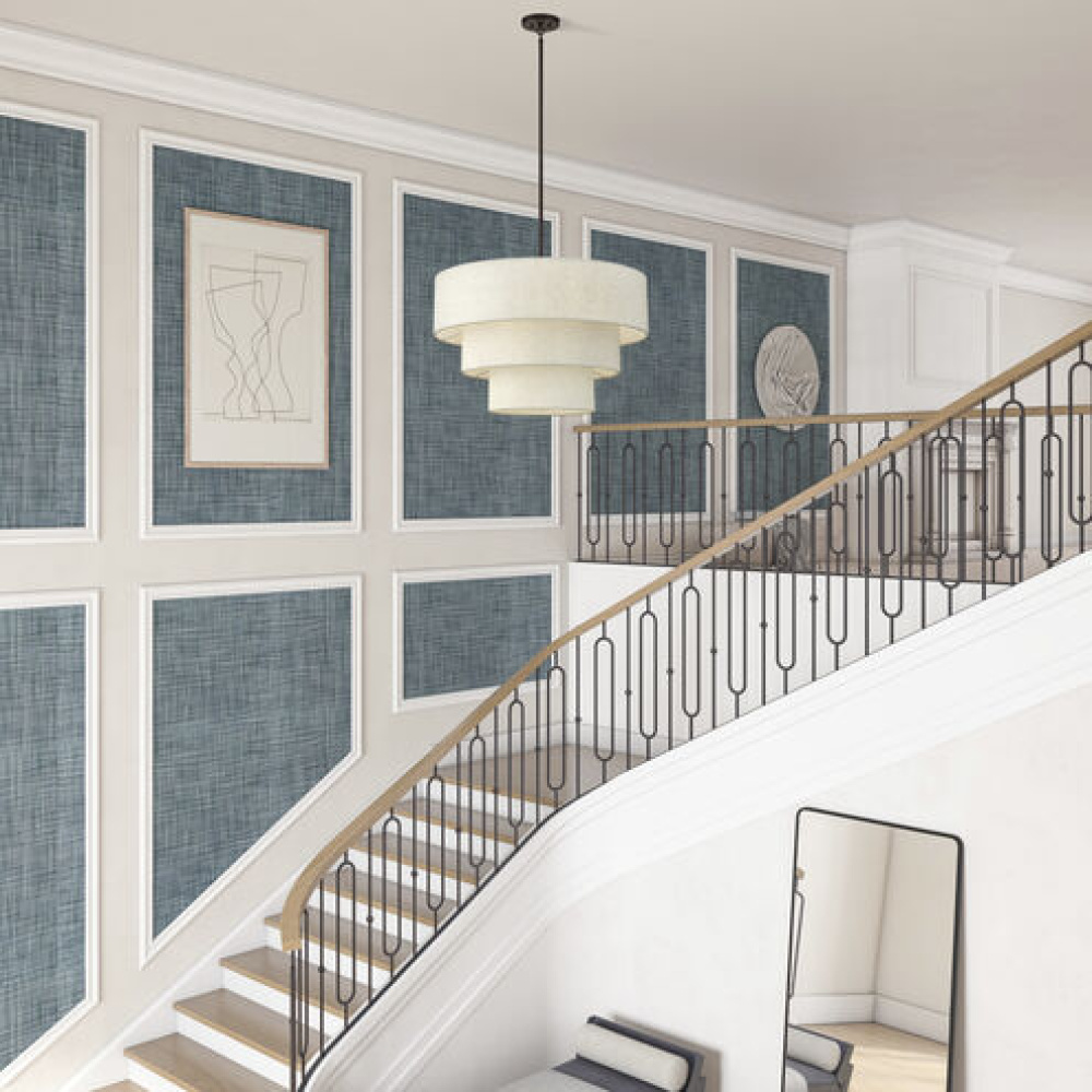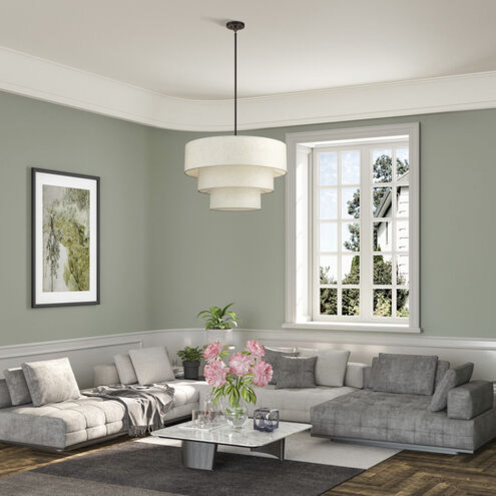No room is too big or too small for the ambient, modern Manorwood lighting collection, given its extensive line-up of ceiling and wall light models in round and linear styles. Featuring minimalist metal frames (available in several mood-setting metallic finishes), the versatile Manorwood design is centered around handmade hardback shades concentrically stacked in a “wedding cake” style in up to 4 tiers.