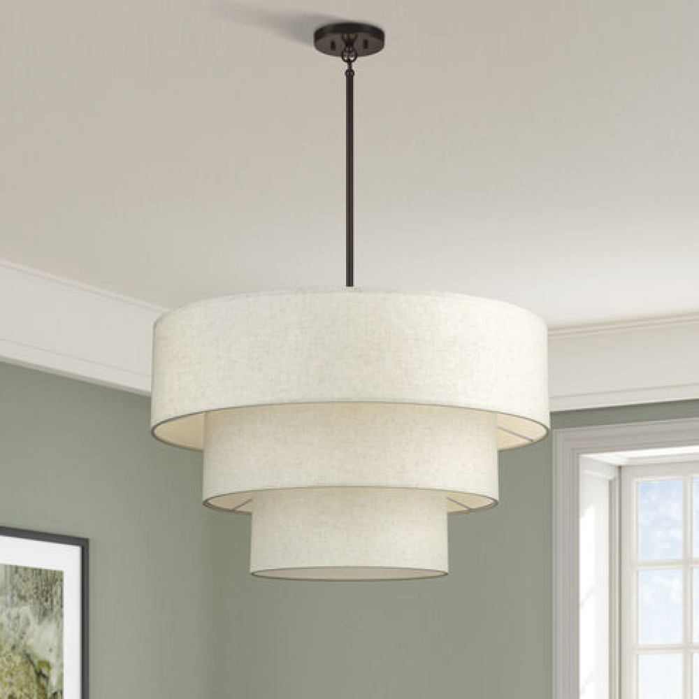 Livex Lighting 41087-91 - 5 LT Brushed Nickel Medium Pendant Chandelier with Hand Crafted Off-White Fabric Hardback Shades