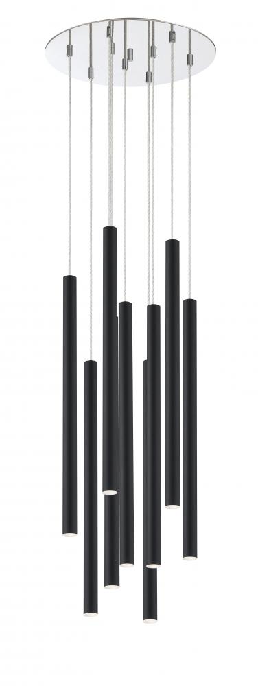 This eleven-light pendant light is sleek and stylish, with elongated modern details. The windchime-inspired silhouette features a sleek, matte black finish.