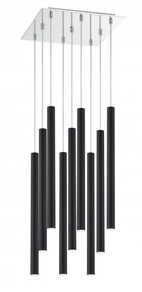 Complete with elongated modern details, this nine-light pendant light features a windchime-inspired silhouette. Sleek and stylish, the clean lines are dressed up with a sleek, matte black finish.