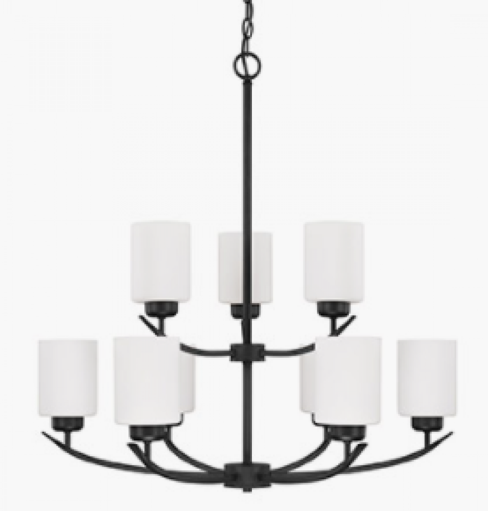 28" 9-Light Soft White Glass Chandelier in Brushed Nickel