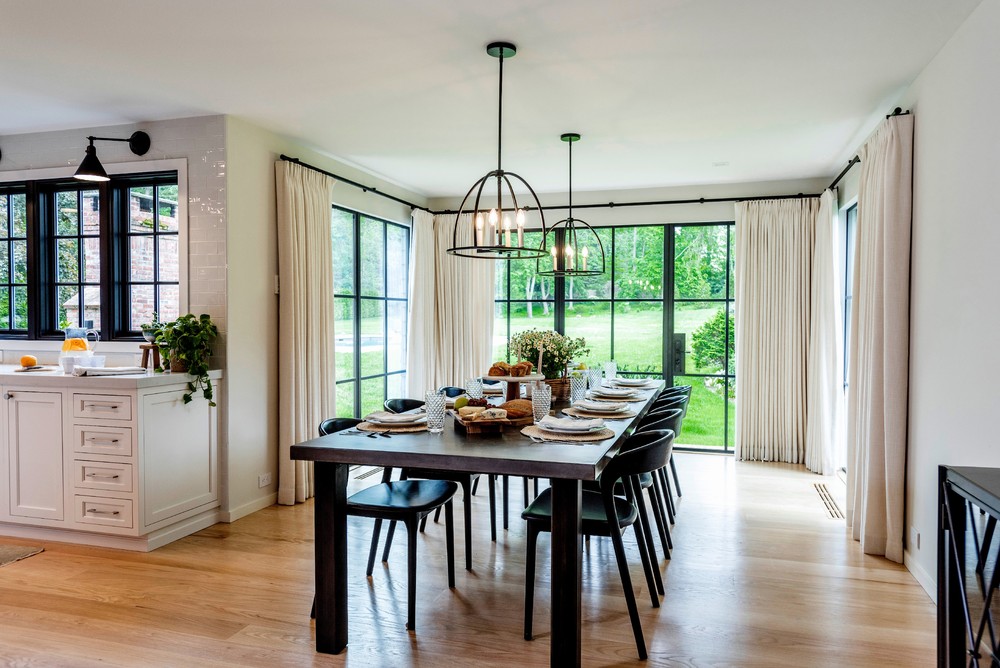 The Abbott linear chandelier presents a simple, streamlined shape and clean lines. The open-concept frame features a metal arch and a sleek, narrow rod with a series of thin bulbs. Mounted above an island or over a dining room table, this fixture appeals to a minimalist sense of style and comes with both white and gold candle sleeves. The Abbott comes in vibrant gold and black finish.