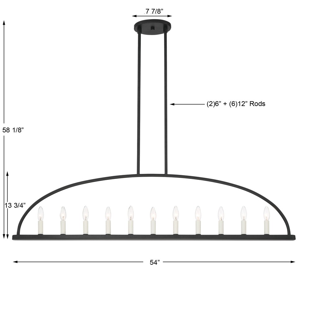 Crystorama ABB-3009-BK - Abbott 54'' Black Linear Chandelier
