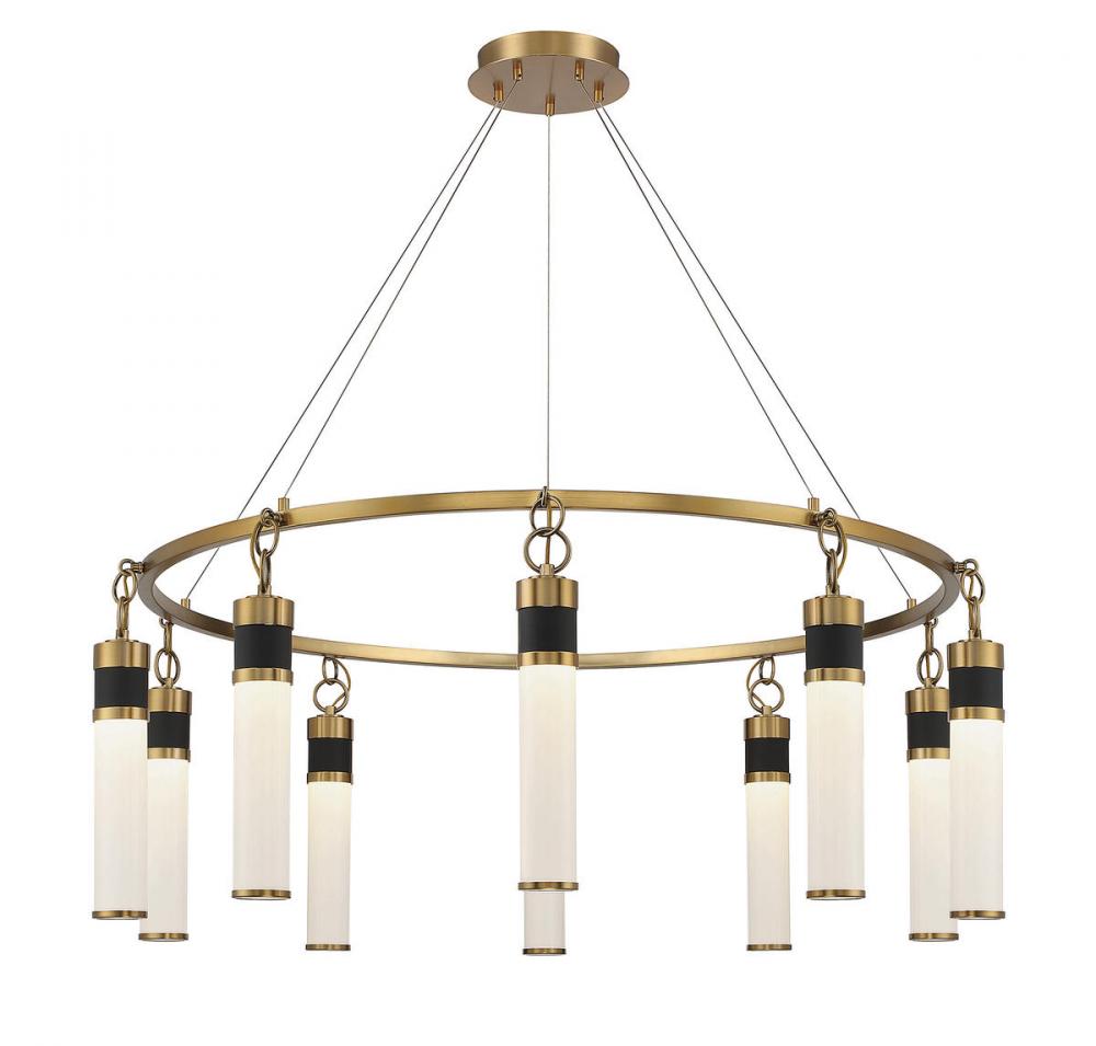 Abel 10-Light LED Chandelier in Matte Black with Warm Brass Accents