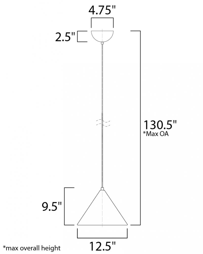 These classic cone pendants available in Matte Black or Matte White appear typical from the outside but take on a different personality from below. These pendants are illuminated on the bottom perimeter creating a black abyss on the inside generating an in