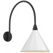 Academy 19.5" Arched Mack Barn Light in Matte Black with 9" White Conical Savannah Shade