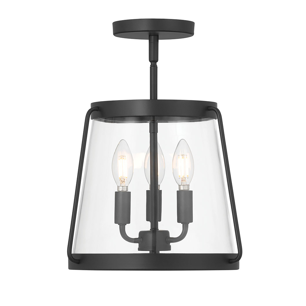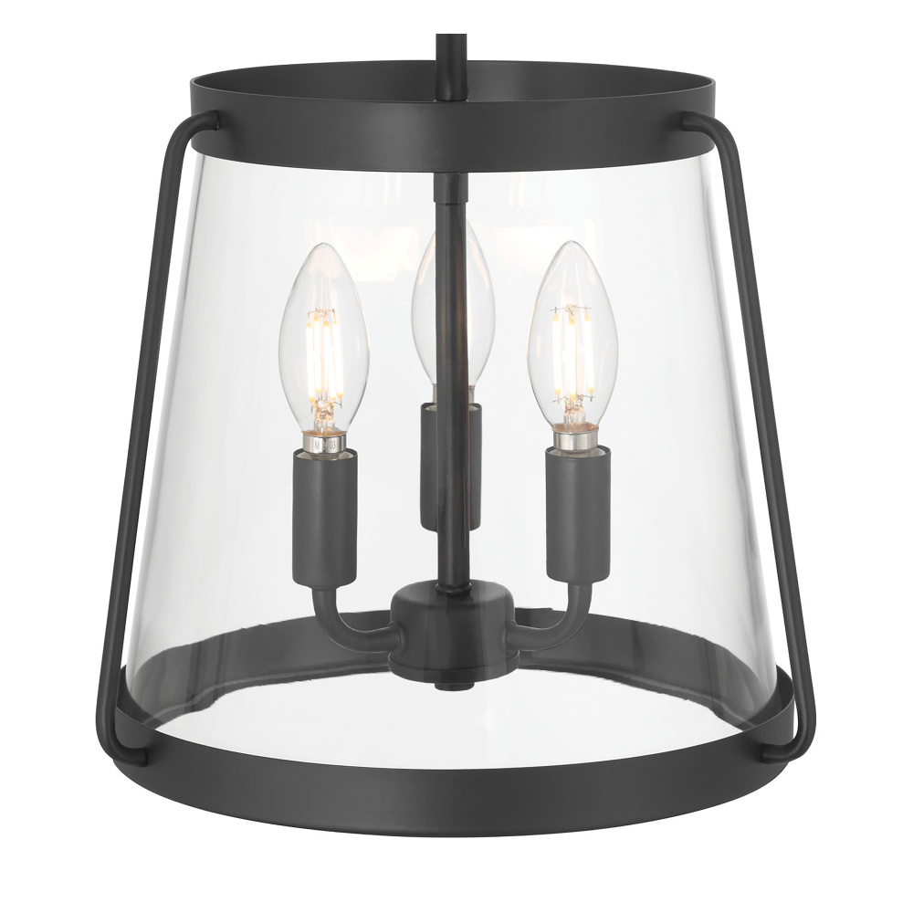 Featuring a Matte Black finish with a Clear glass shade.