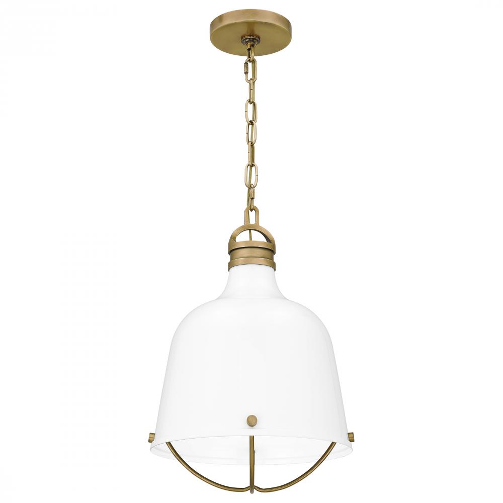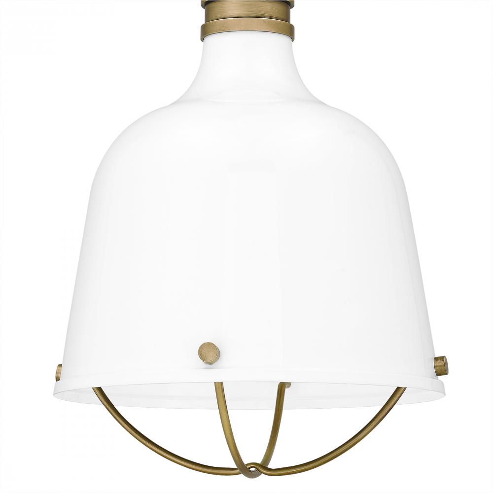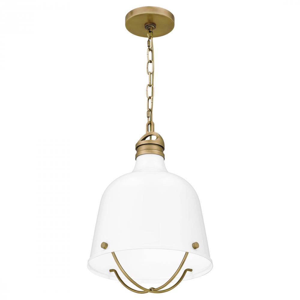Adlington’s sleek shade with brushed nickel accents is a welcome addition to nurseries and children’s bedrooms. Or, pick up this mini pendant in the white and weathered brass colorway to create a chic lighting solution in a reading nook or powder room.