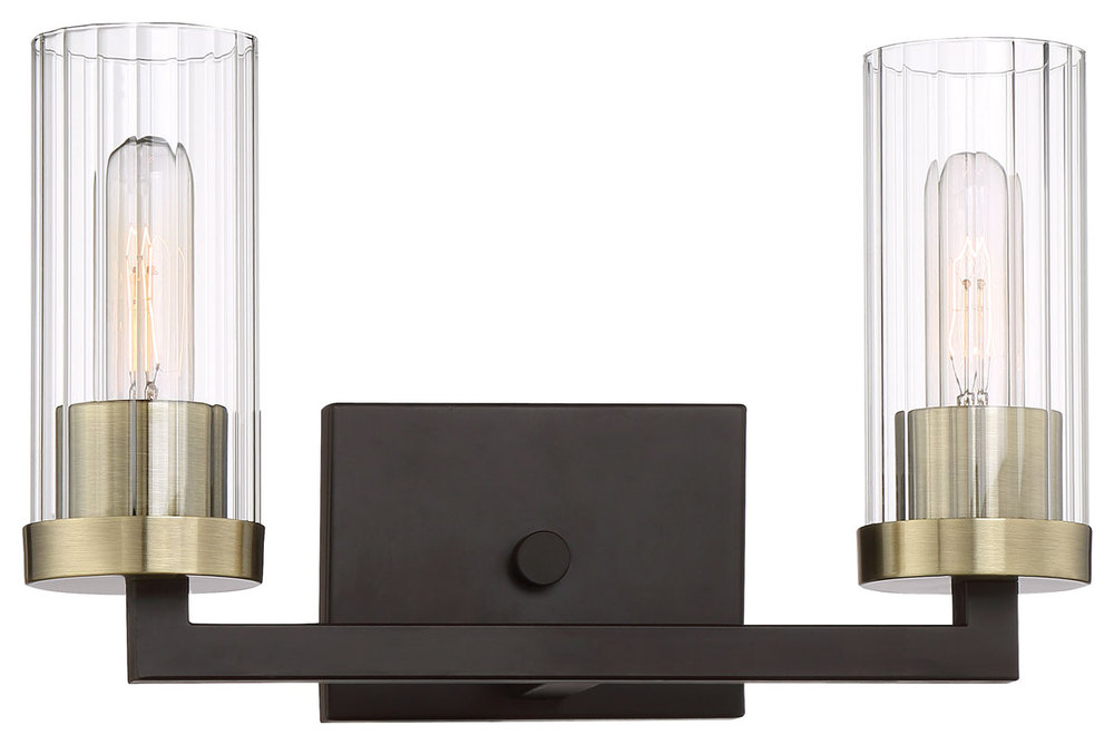 2 Light Bath in Aged Kinston Bronze with Brushed Brass Highlights