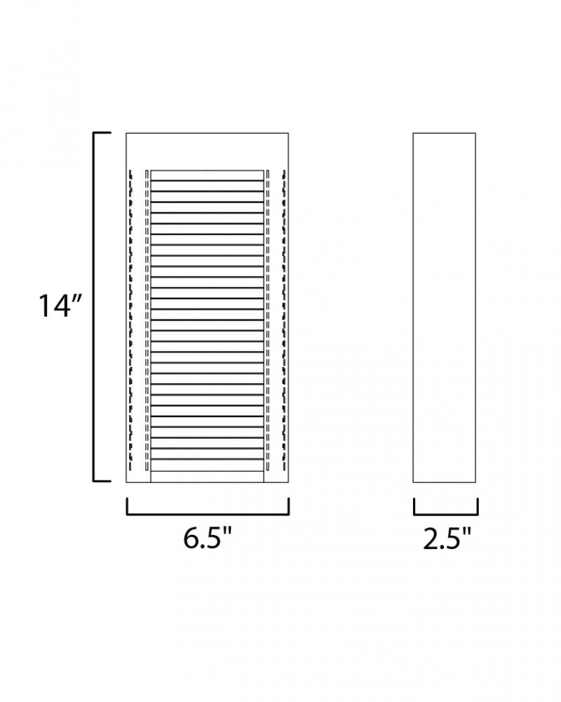 Die cast aluminum frames house a niche of stainless steel corrugated panels in a Gold finish. Two strips of dedicated LED lighting illuminate the washboard shape, which produces a warmer ambient light source when reflected off the contrasting Gold tone