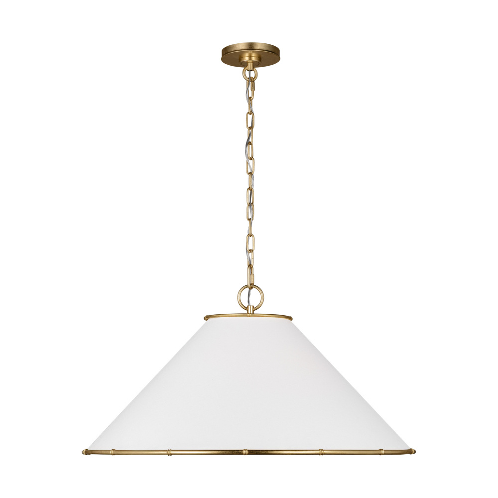 Crafted with Steel in a Gild finish with silk screen white inside clear outside glass diffuser and white linen fabric shade