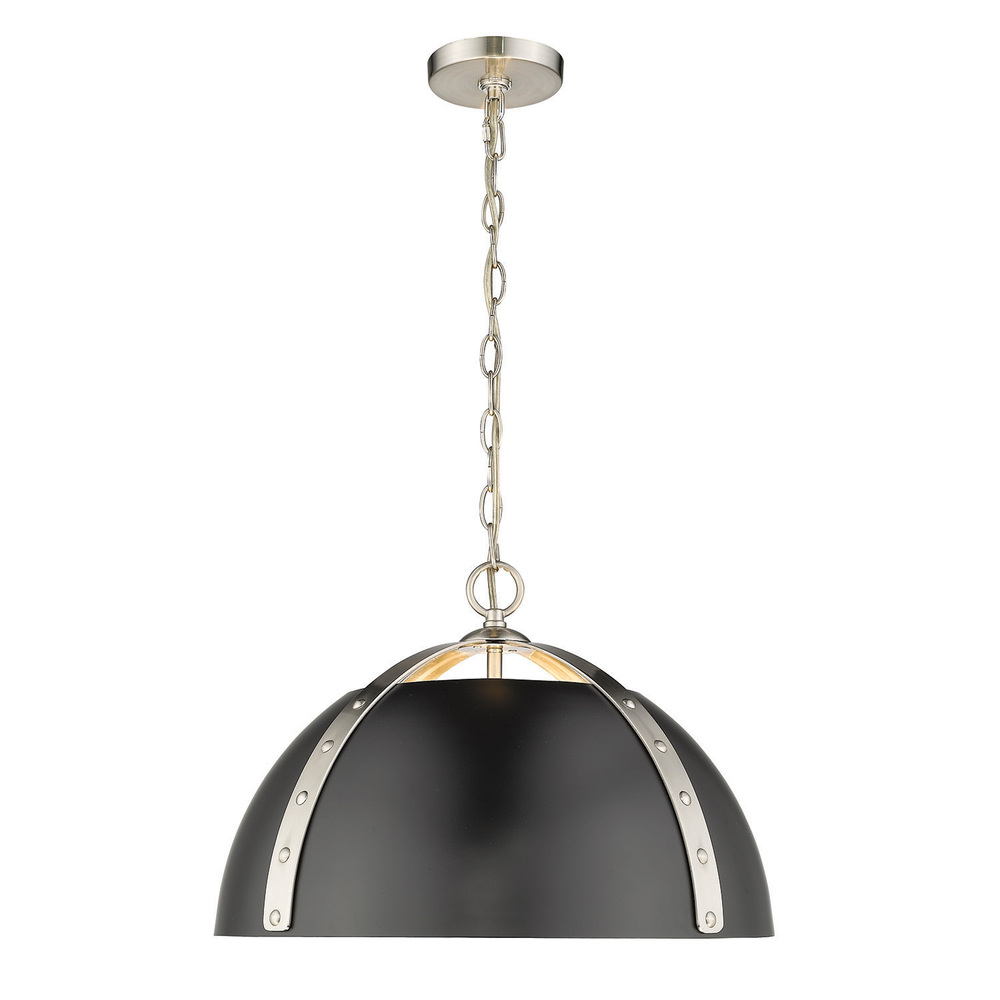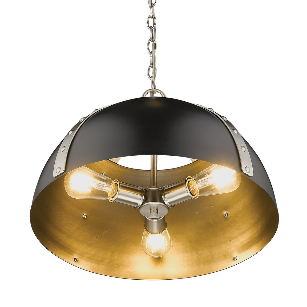 Finally, fashion meets function in a refined, oversized dome pendant with the ability to cast ample light. Aldrich is a stylish collection of industrial-inspired pendants designed to push bright ambient and task light through the tops and bottoms of metal shades. Heavy-duty rivets provide aesthetic appeal and utility, securing the matching wide steel straps to the coordinating shade. Created to complement a wide variety of interior styles, from modern to rustic, these pendants are available in multiple finish combinations. The frame is offered in multiple finishes with a selection of different shades to complete the look. This 3-light pendant is perfect for intimate settings or in a large, open kitchen.