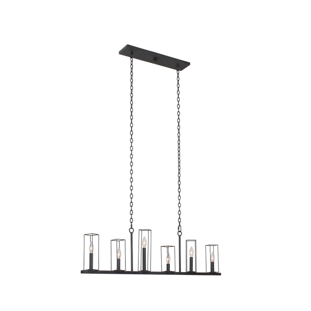 Clean geometric forms frame warm candlelight creating a landscape fit for any living space. Featuring a Black Iron finish and simple steel construction.