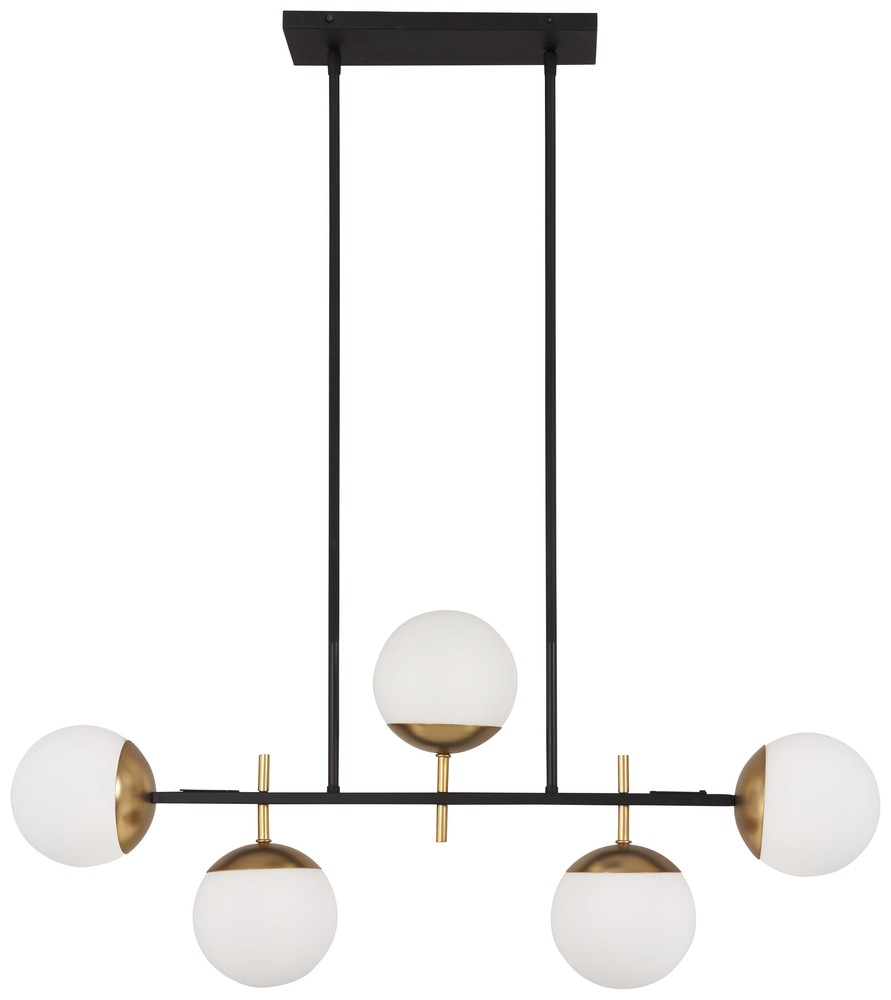 5 Light Island Light in Weathered Black Finish with Autumn Gold Accents with Etched Opal Glass