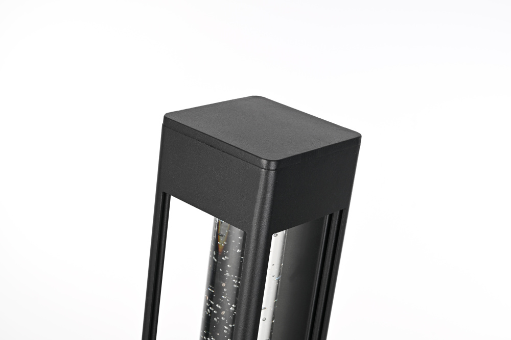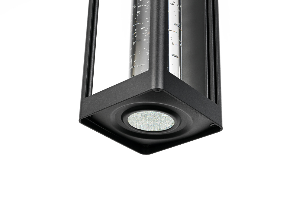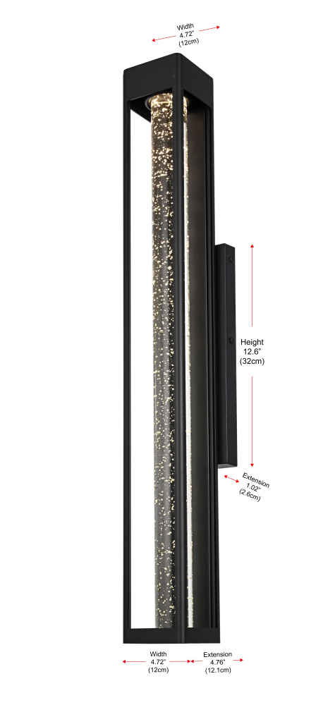 Designed with a strong geometric frame, this LED wall sconce adds structure and definition to outdoor spaces. The rectangular black metal body encloses a thick 2-inch clear seedy glass cylinder, which enhances the light diffusion while maintaining a crisp, modern glow. Built for durability, the iron and aluminum frame ensures long-term performance, while the ETL Wet Rated certification makes it a reliable choice for entryways, patios, and exterior walls. The compact 5”L x 1”W x 12.5”H backplate allows for a secure and streamlined mount, and the 7-inch pre-wired lead simplifies installation. Featuring an integrated 11W LED, this fixture emits a warm 3000K light at 400 lumens, with a 120-degree beam angle and 90 CRI for balanced illumination. Dimmable and hardwired for stability, this sconce combines precision and functionality for contemporary exteriors. Available in multiple sizes from 10” to 32”, this fixture provides flexibility for different architectural styles and placements. Built with marine-grade, corrosion-resistant aluminum, this sconce withstands coastal conditions for long-lasting durability.