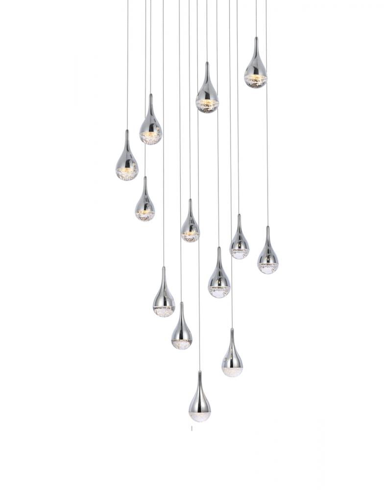 The chandelier features 13 cascading solid bubble crystal design that adds a touch of glamour and sophistication to any space. The solid crystals create a stunning play of light and reflections, illuminating your room with a radiant glow.