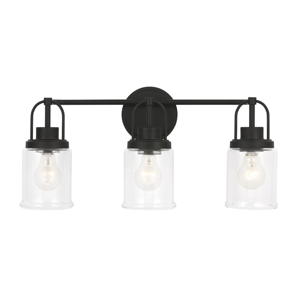 Crafted with Steel in a Midnight Black finish with clear glass shades
