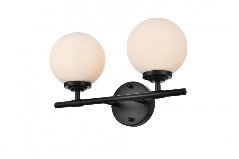 Elegant LD7301W15BLK - Ansley 2 light Black and frosted white Bath Sconce