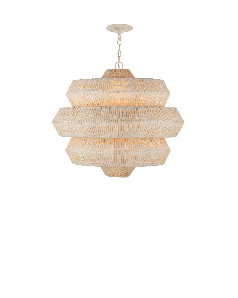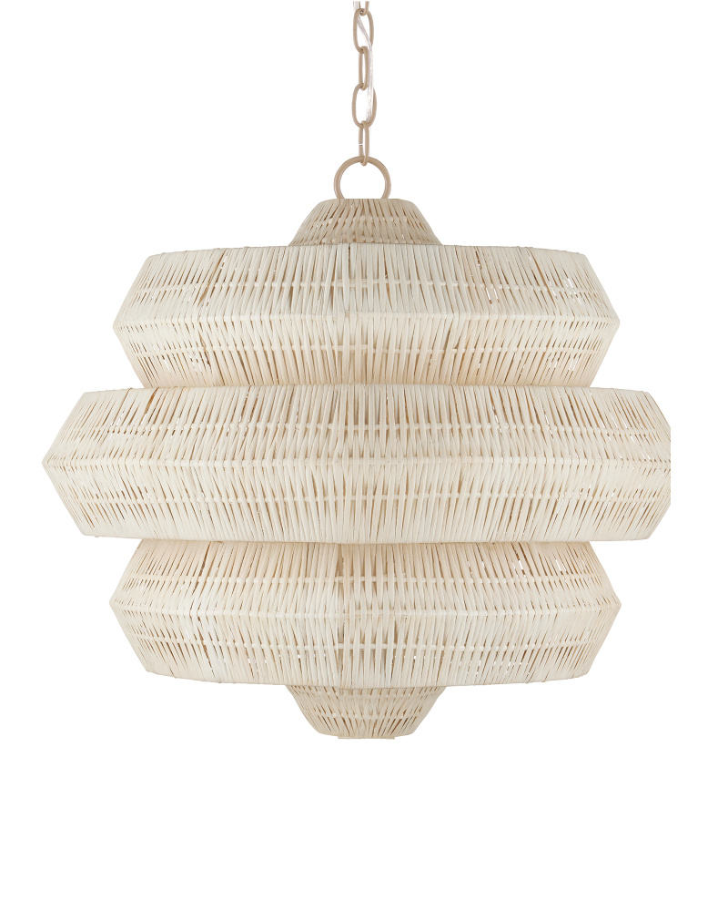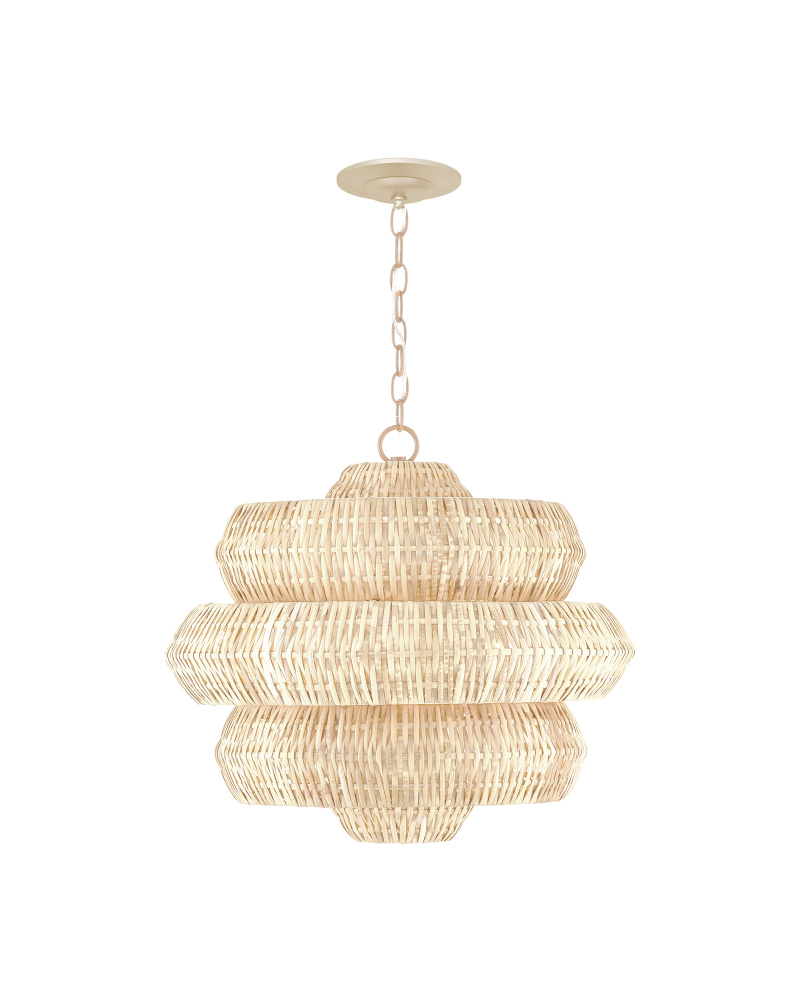 Painstakingly woven by artisans who use traditional techniques, the Antibes Small White Chandelier is a marriage of artistry and high-quality construction. Natural bleached rattan forms the body of this geometric chandelier shaped by a wrought iron frame in a snow-white finish. This is a petite chandelier at 22.5 inches in diameter. The three lights reflect through the tight weave to create subtle patterns when the chandelier is illuminated. Adjustable from 26.5" to 94.5" with use of included chain/rod kit/cable. If your space calls for a longer drop, additional chain/rods/cable is available for purchase.