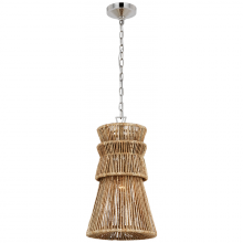 Antigua 13" Pendant in Antique-Burnished Brass and Natural Abaca
