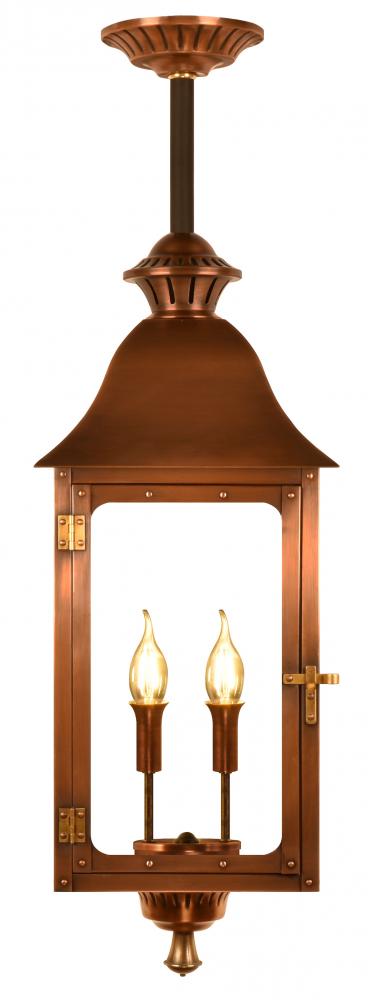 Size 29 Electric Copper Lantern, 2 candelabra base sockets, with Stem Mount