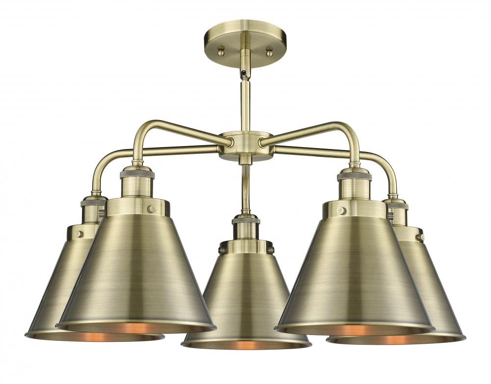 Appalachian - 5 Light - 27 inch - Antique Brass - Antique Brass Shade - Chandelier