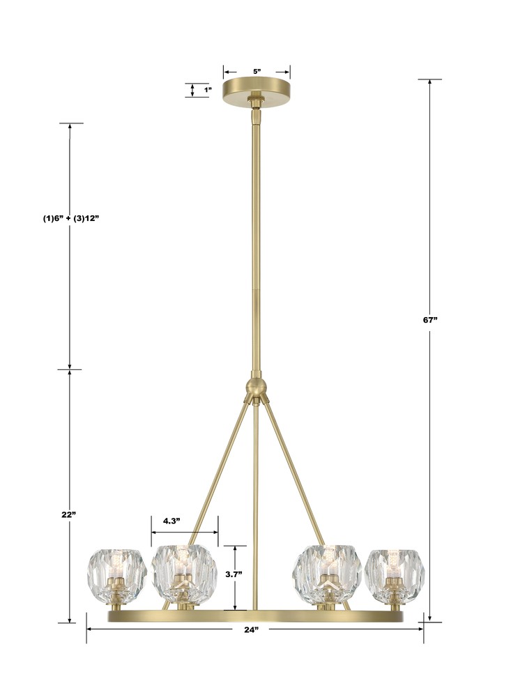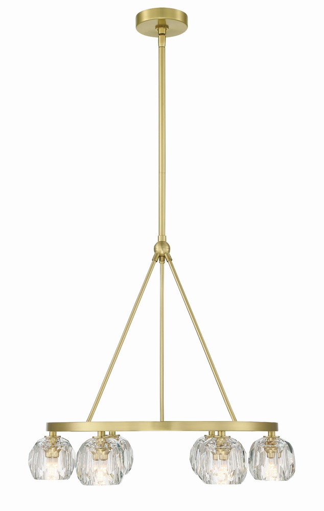 Finely crafted with great attention to detail, the Aragon Collection is a mix of industrial meets modern style. The Soft Brass minimalist look includes rods attached to a large frame, facet-cut crystal globes and packed-in G9 Dimmable LED Bulbs, (rated at 3000K, 400 lumens and CRI 80). This functionally timeless fixture can be hung with upward or downward-facing light giving you the flexibility to choose how you would like to set the mood of the room.