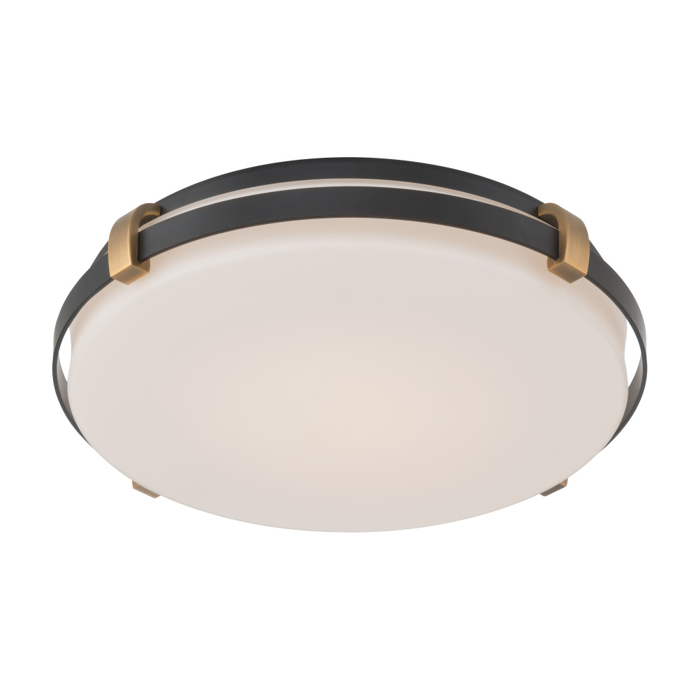 5CCT LED Flush Mount - Dark Matte Black and Legacy Brass with Etched Opal Glass