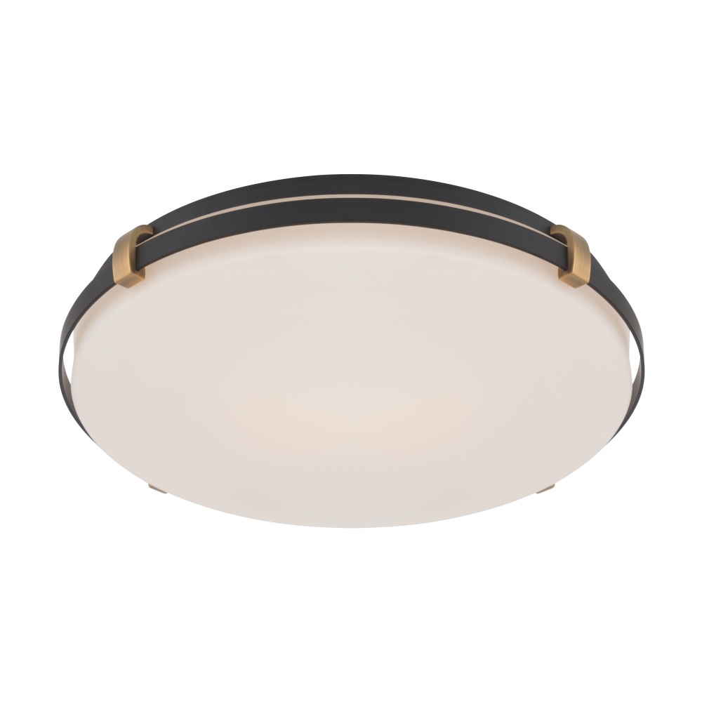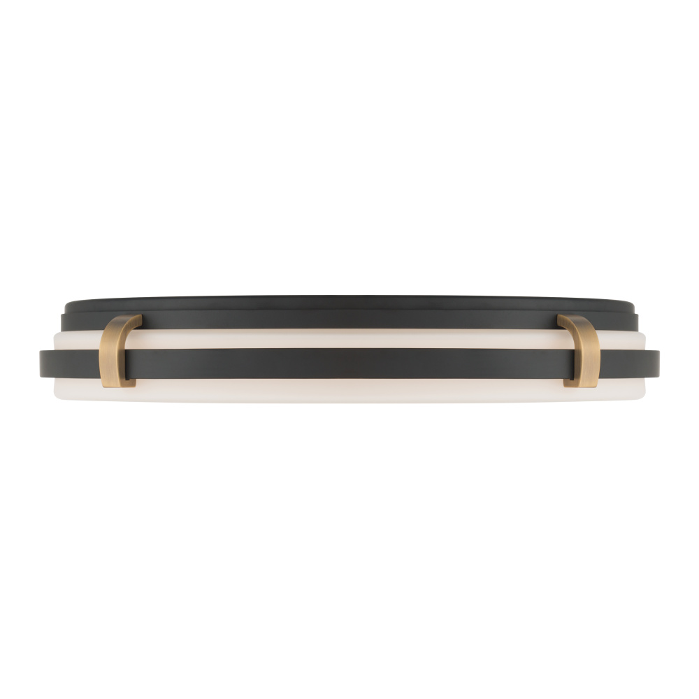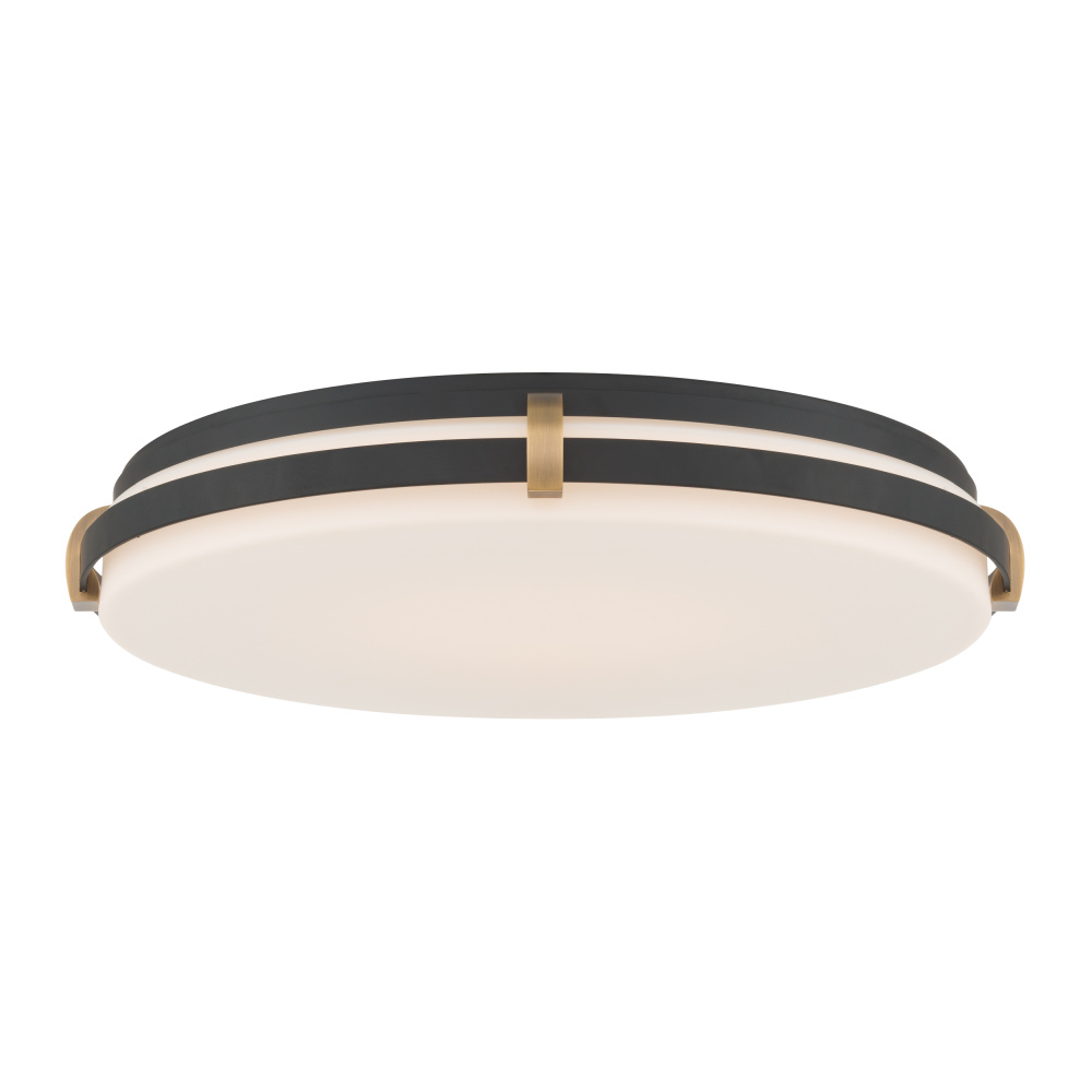 5CCT LED Flush Mount - Dark Matte Black and Legacy Brass with Etched White Glass