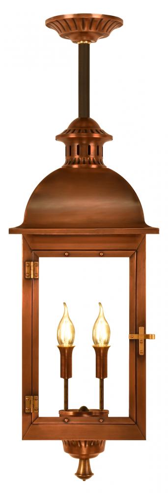 Size 23 Electric Copper Lantern, 2 candelabra base sockets, with Stem Mount