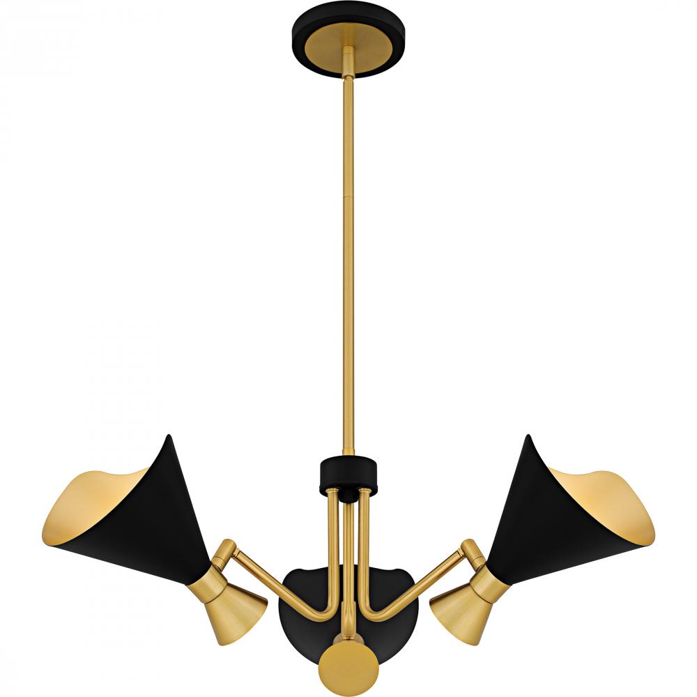 The Arden collection is a striking blend of modern design and functional versatility. The combination of matte black and gold finishes creates a visually appealing contrast, perfectly highlighting the geometric shape. The metal shades rotate in and out, bu
