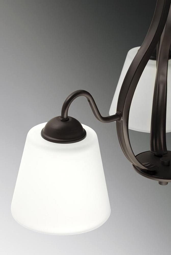 The three-light chandelier from the Arden collection offers a comfortable silhouette that is both rustic and modern. A substantial frame is crafted from overscaled tubing with complementing etched glass shades. This transitional style fixture is finished in Antique Bronze.