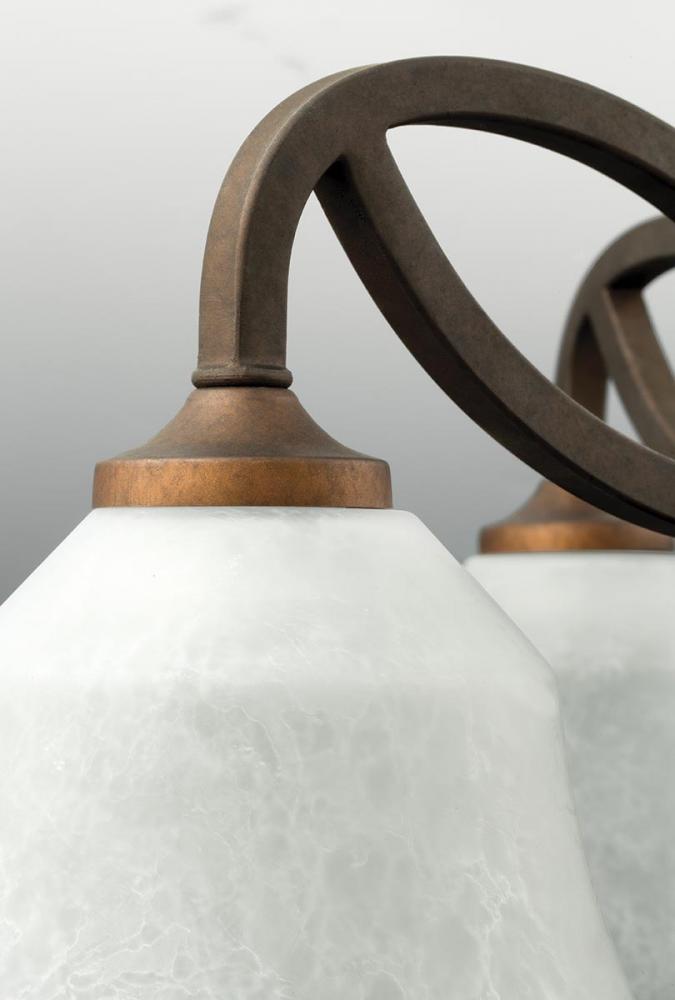 The two-light bath & vanity from the Arden collection offers a comfortable silhouette that is both rustic and modern. A substantial arm suspends etched glass. This transitional style fixture is finished in Brushed Nickel.
