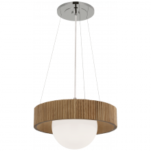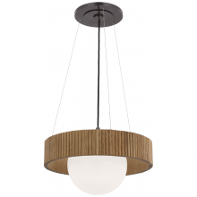 Arena 18" Ring and Globe Chandelier in Hand-Rubbed Antique Brass and Natural Oak with White Glass