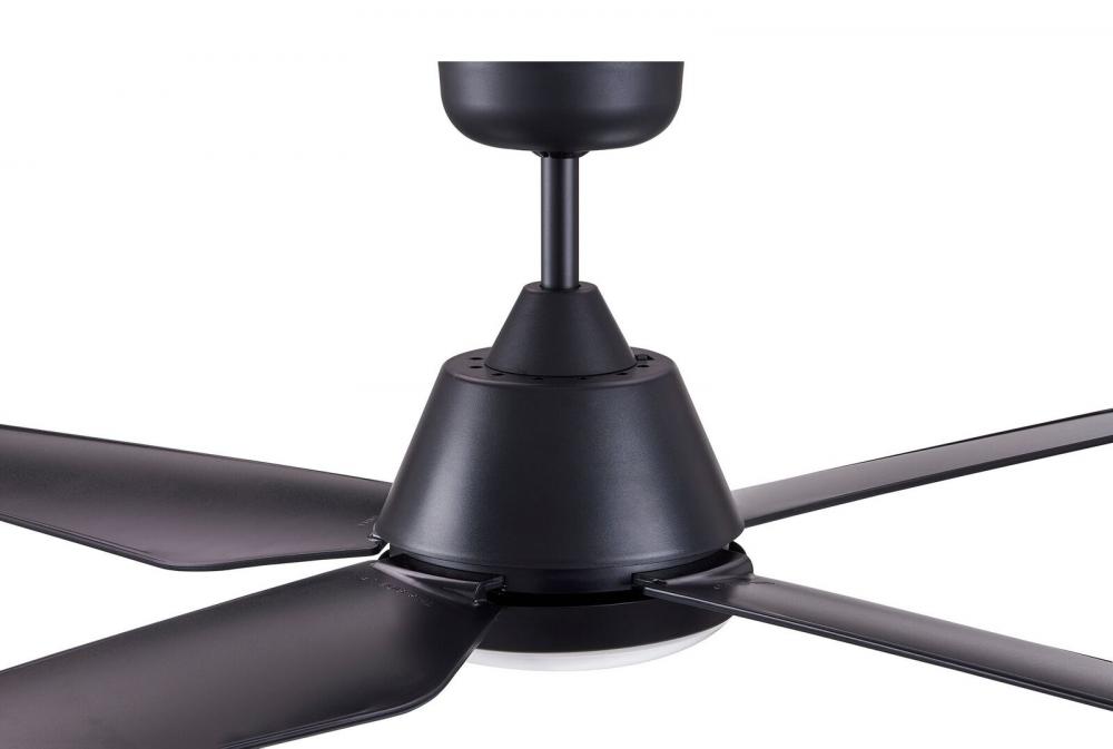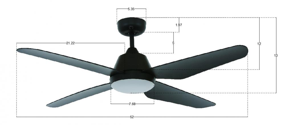 Lucci Air Aria 52 inch, 4 blade ceiling fan with 18 watt LED light kit, 3 speed remote control included, black with black blades. The Aria is sophisticated in look with its hidden blade supports. It comes with an ABS body and high performance blades, perfect for coastal environment. Comes complete with an 18 watt integrated non dimmable LED, 1100 lumen, 3000K warm white.Set includes: One (1) ceiling fan with remote controlMaterial: AbsFinish: BlackRemote Control Included6 inches motor3 speed remoteAirflow(CFM): 5095.66; 3767.15; 2311.44Motor Wattage: 55WSocket: LEDNon-dimmableLumen: 1200Summer/Winter mode: YesPoles: 16Blade pitch: 11Wet/Damp: IndoorVoltage: 110VFan watts when used at high speed: 55wDown rod material: SteelPower Consumption Average(wattage): 73WBlade width: 5.63 inchesETLLight kit: IncludedLimited lifetime warrantyCeiling fan dimensions: 13 inches high x 52 inches wide x 13 inches deepThis product will ship to you in one (1) box.Accessories pictured are NOT included.Assembly required.