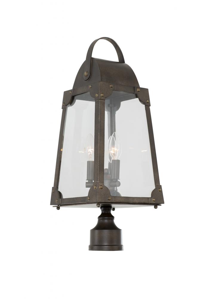 This outdoor collection has a classic style with the yolk handle and rivet details. It is all Aluminum Construction and is supplied with clear glass and an Aged Bronze Finish.