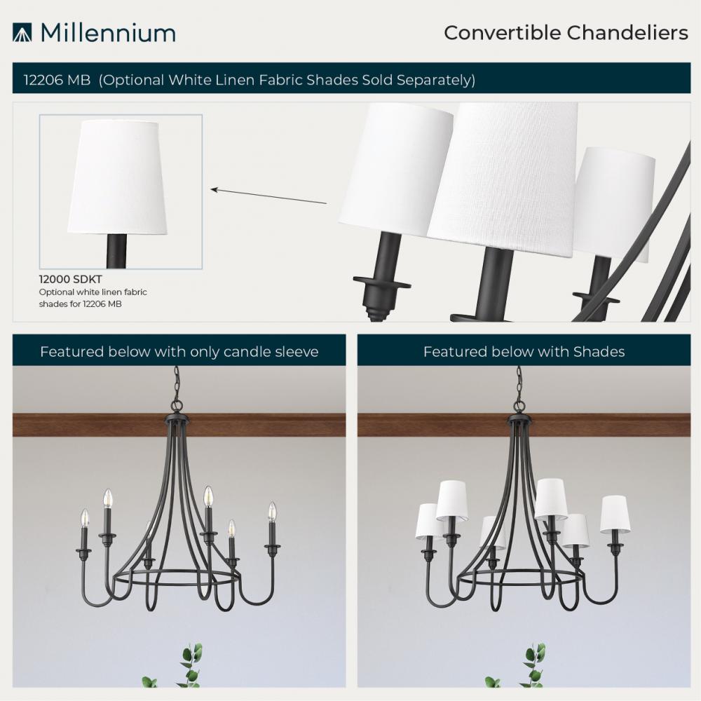 Millennium 12206-MB - Artemis 6-Light Chandelier Ceiling Light Matte Black
