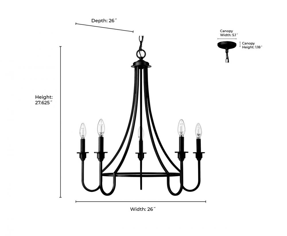 Millennium 12205-MB - Artemis 5-Light Chandelier Ceiling Light Matte Black