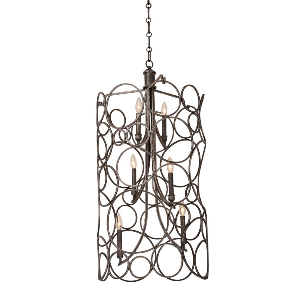 The Ashbourne Collection was inspired by playing with bangle bracelets. The seemingly random circles, available in two of Kalco’s exclusive finishes, are a modern take on lantern-style pendants. The open grid of Mid-Century Modern circles create a shell around a column of candelabra style bulbs to create a piece that truly makes a statement in any space.