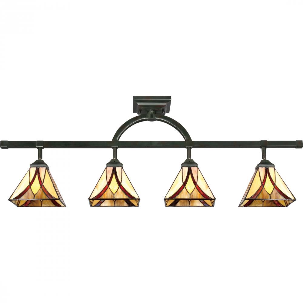 Gentle scrollwork and Tiffany style in a classic pattern brings sophistication to the Asheville Collection. The Tiffany glass is hand assembled using the copper foil method developed by Louis Comfort Tiffany. The Valiant Bronze finish anchors the traditi
