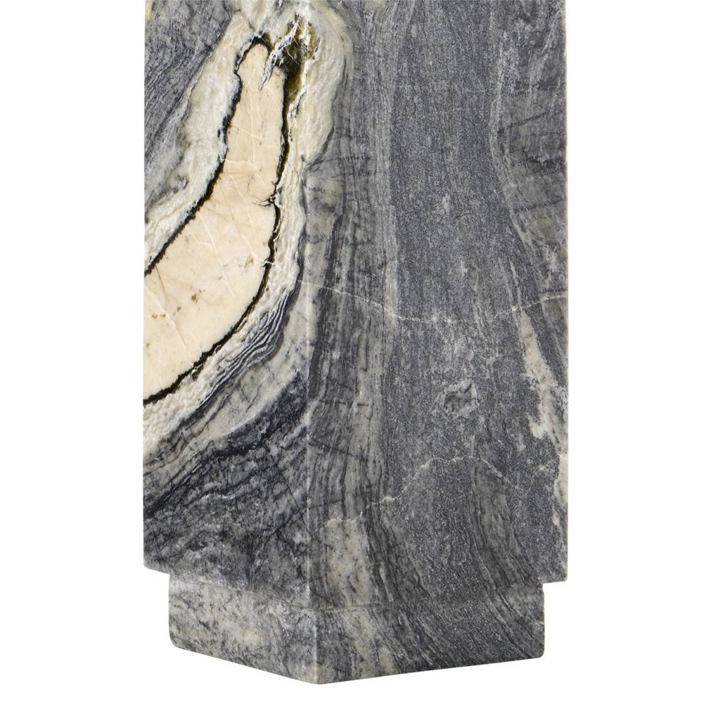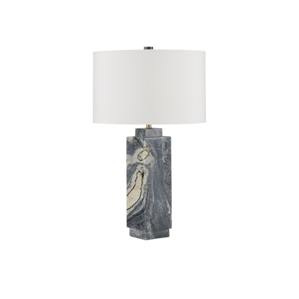 The Ashlar Jade Marble Table Lamp showcases one of nature's true works of art. Made of Floral Jade Marble, the gray lamp features a simple shape that allows the material to be the star of the show. The character in the stone varies from piece to piece, making each lamp one of a kind. The Ashlar is topped with an off-white shantung shade, and the hardware is finished in brass, adding a touch of elegance to the design.