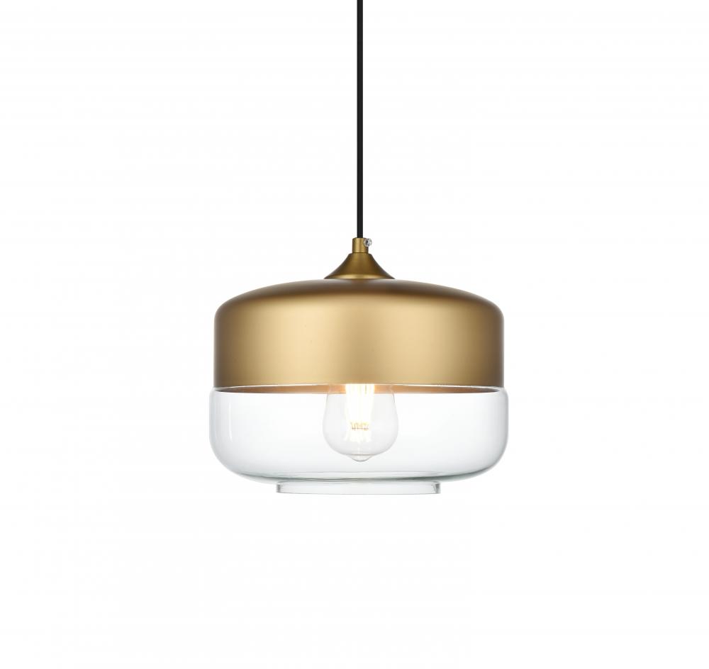 The perfect marriage of vintage charm and modern refinement, Ashwell pendant lamps blend well with decor from both Old World and New. A disk-shaped iron frame in a satin gold finish comes with adjustable black hanging cord. A matching clear glass round shade envelopes an E26 filament bulb (not included) to complete the overall look. Ideal for a breakfast nook, kitchen, office, or studio.