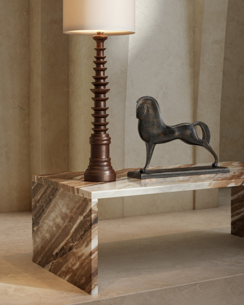 The Assyrian Horse Bronze is made from a lost-wax technique where boiling bronze is poured into a mold covering an original wax sculpture that melts away. Once set, there is a very long process of refining the bronze to give it patina. The Etruscan style and the aged finish of this bronze sculpture make it feel like an antique.