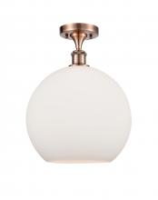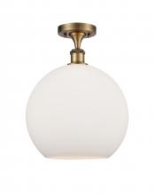 Athens - 1 Light - 12 inch - Antique Brass - Matte White Shade - Semi-Flush Mount