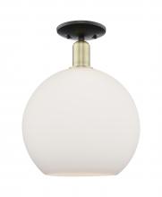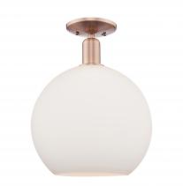 Athens - 1 Light - 12 inch - Antique Brass - Matte White shade - Semi-Flush Mount